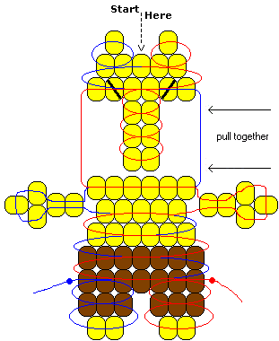 Materials: 2 1/2 yards cord of choice 1 lanyard hook or keyring 50 yellow pony beads 20 brown pony beads black sharpie marker or paint pen to draw eyes