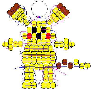 Materials: 2 yards cord of choice 1 lanyard hook or keyring 80 yellow pony beads 9 brown pony beads 3 black pony beads 2 red pony beads