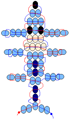 Materials: 1 yard cord of choice 1 lanyard hook or keyring 40 light blue pony beads 7 ivory pony beads 4 navy blue pony beads 3 black pony beads