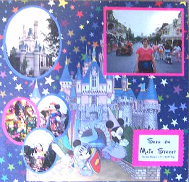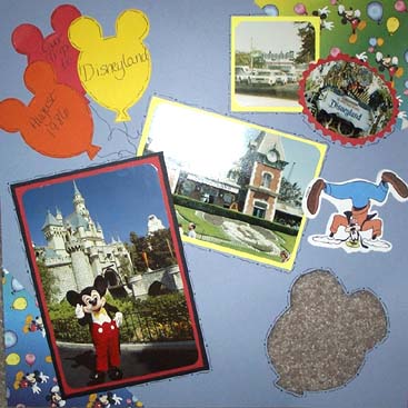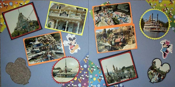 This is a peek-a-boo page. The Mickey ears shape is cut out on the first page so that you can see the picture on page 3 through it.