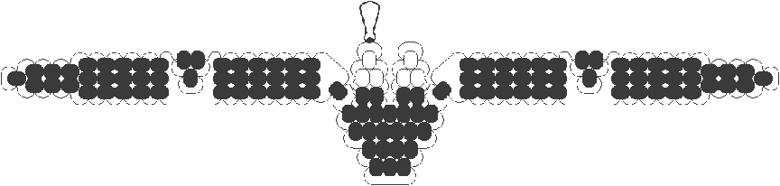Special Instructions: To make the wing, string 38 beads onto 1 strand of cord. Put the cord back through the 36th and 37th beads (in that order), going in the opposite direction. Put the cord back through the 34th and 35th beads (in that order), going in the opposite direction. Continue restringing the beads in this fashion until you have finished 4 rows of three beads. Then add 3 new black beads as shown. This will add the bend in the bat's wing. Continue restringing the rest of the wing, following the pattern.