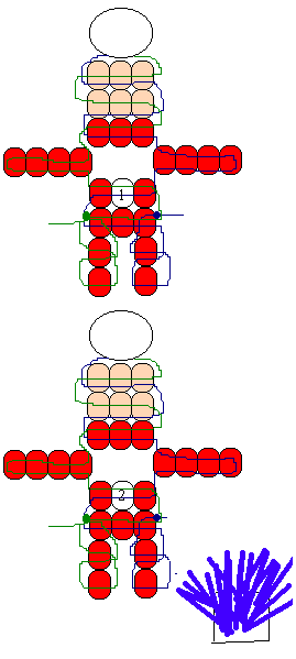 Directions for Hair: Cut yarn into one- to two-inch strips (depending on how long you want hair to be). Glue strands onto paper, as shown, and glue paper onto back of head. Note that I just used a row of blue beads for the hair in my version.
