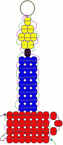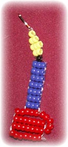 add three beads, then string through top row of red beads, to make handle for candlestick.