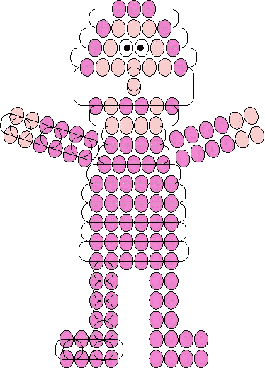 Materials: 3 yards cord of choice Sharpie marker for mouth and eyes 25 peach or ivory pony beads 2 white pony beads 96 pink pony beads