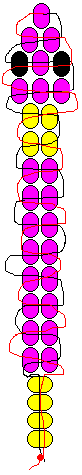 Materials: 1 yard cord of choice 1 lanyard hook or keyring 23 lavender red pony beads 8 yellow pony beads 2 black pony beads